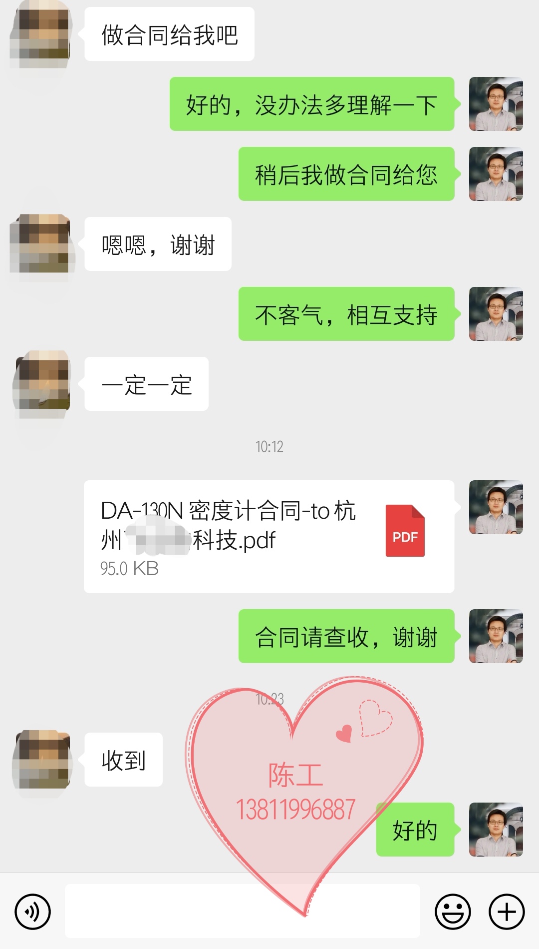 今天是2023年新年開工第一天,繼一位固體密度儀的老客戶傳匯款單過來后,這位新客戶說便攜式液體密度計DA-130N做合同給我吧。
