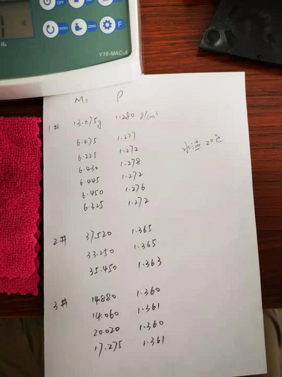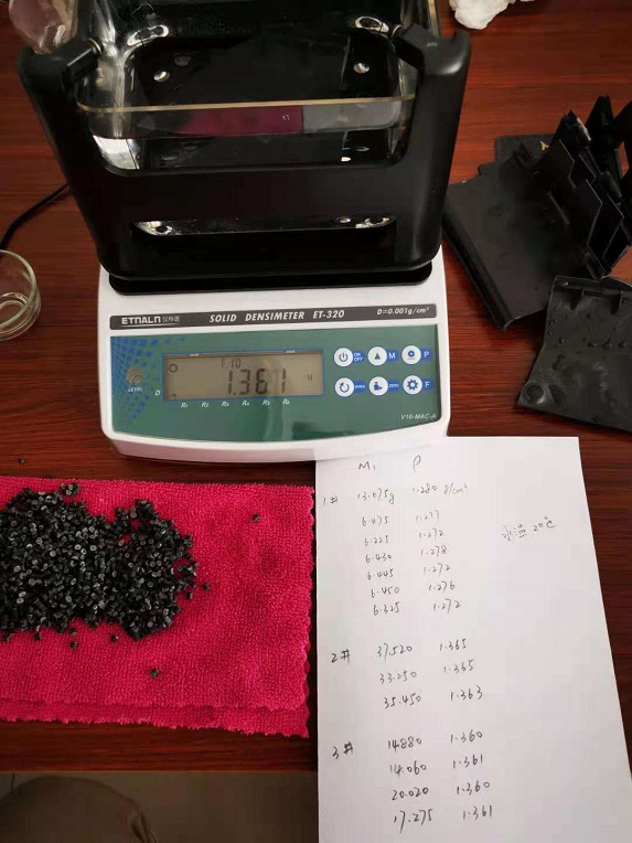 ET-320固體密度測試儀,測量客戶寄來的樣品后,測量顆粒,模具等產(chǎn)品的密度結(jié)果。