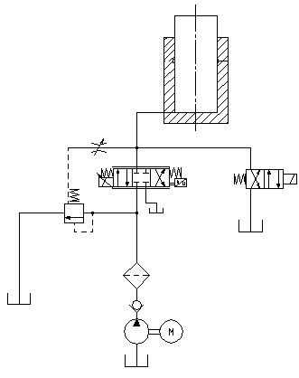 液壓原理如圖二所示,為負(fù)載適應(yīng)型進油節(jié)流調(diào)速系統(tǒng)。